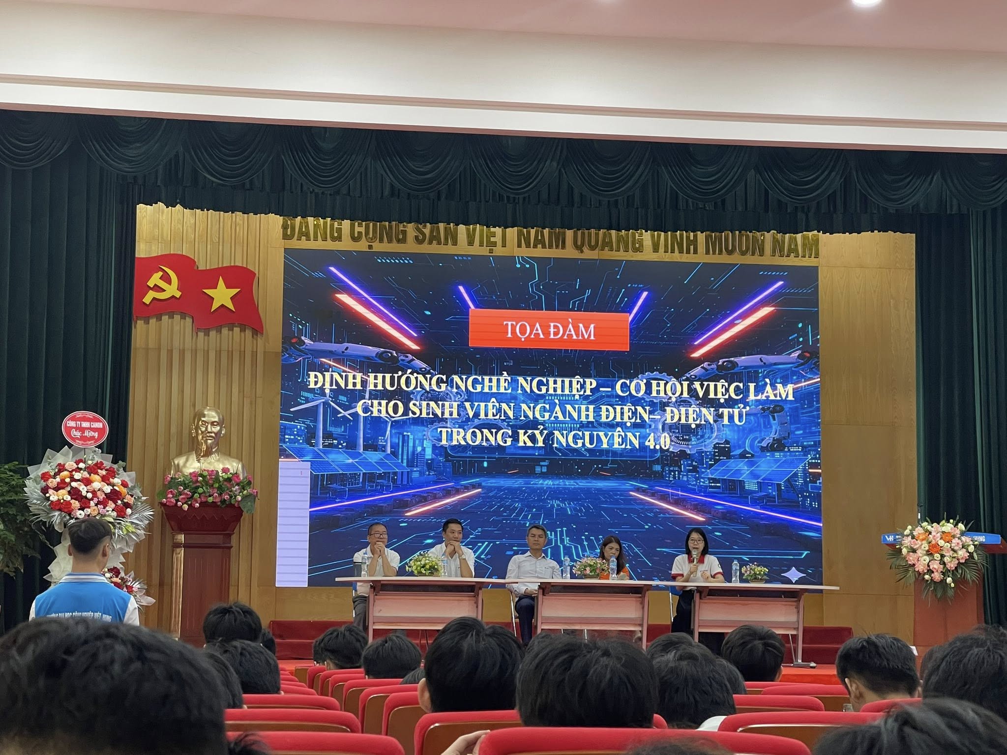 Một điểm nhấn nổi bật là Tọa đàm – Hỏi đáp trực tiếp với chủ đề “Định hướng nghề nghiệp – Cơ hội việc làm cho sinh viên ngành Điện – Điện tử trong kỷ nguyên 4.0”. Tại đây, các doanh nghiệp và giảng viên đã trực tiếp giải đáp thắc mắc của sinh viên về kỹ năng, cơ hội nghề nghiệp và xu hướng phát triển của ngành.