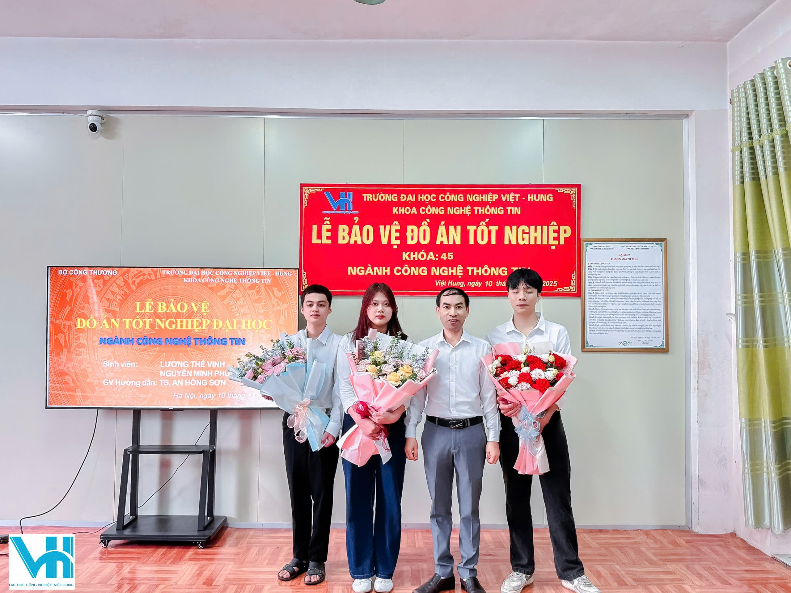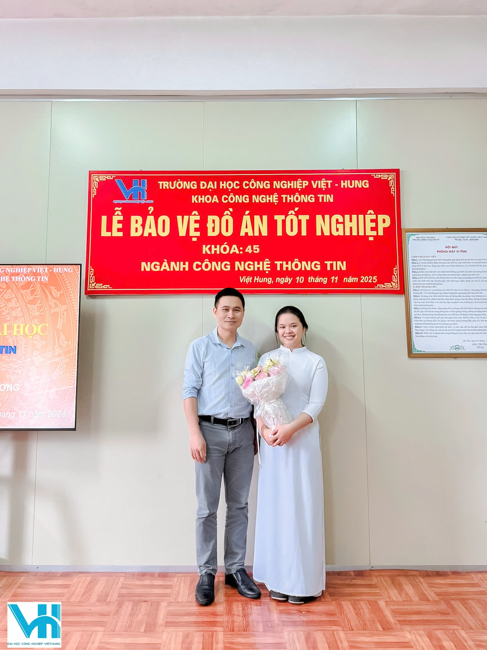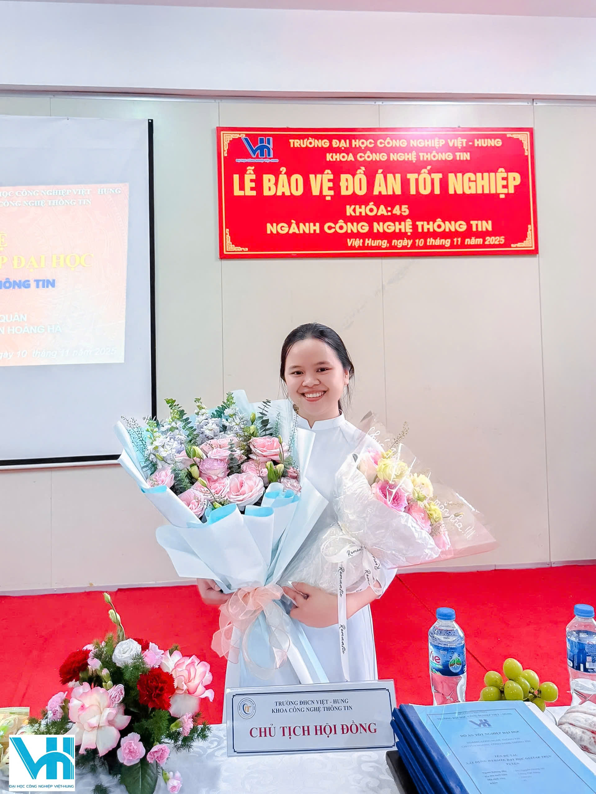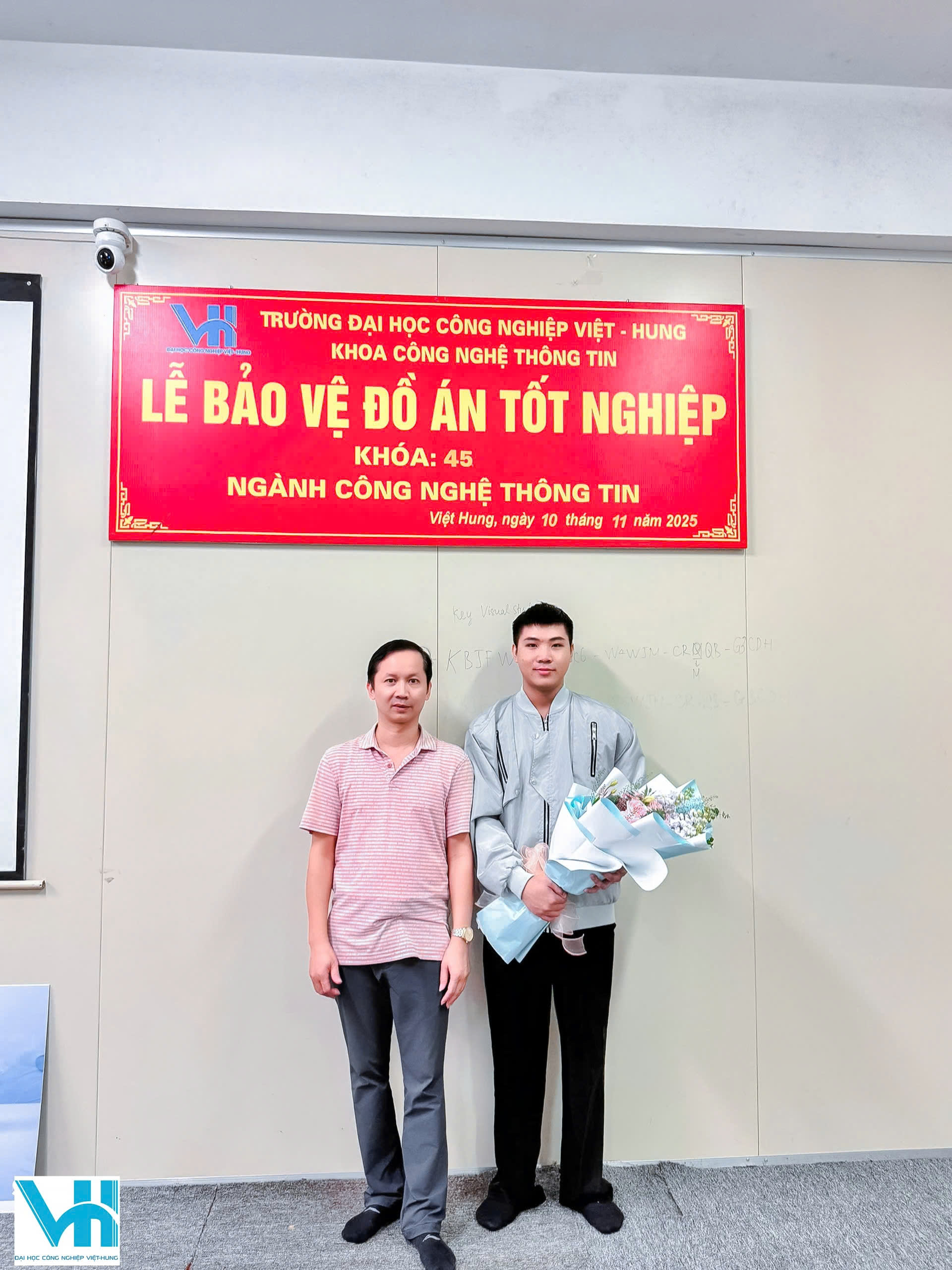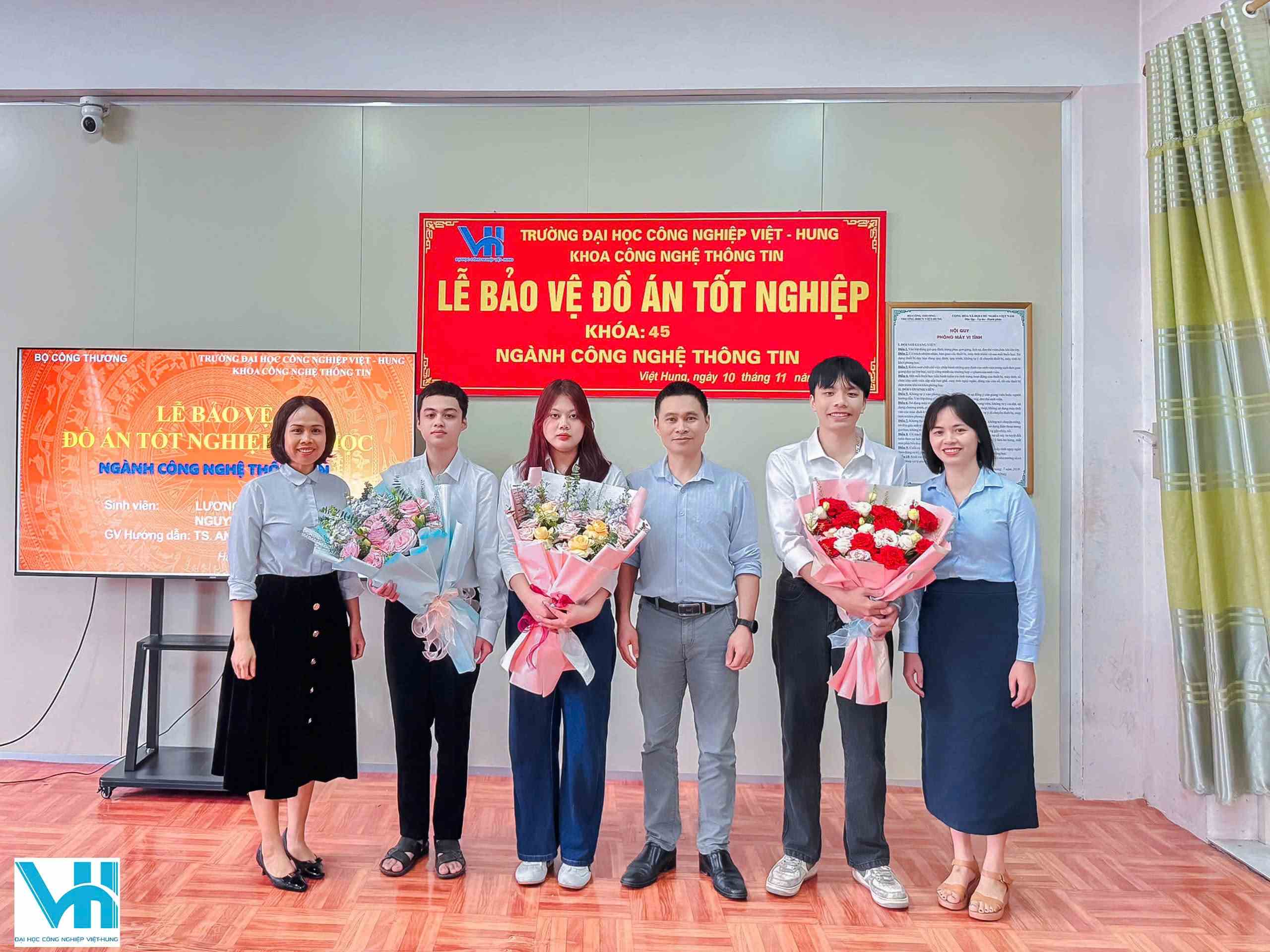 Sáng ngày 10 tháng 11 năm 2025, tại Trường Đại học Công nghiệp Việt – Hung, Khoa Công nghệ Thông tin đã long trọng tổ chức Lễ bảo vệ đồ án tốt nghiệp cho sinh viên K45 ngành Công nghệ thông tin khóa học 2021 – 2025. Buổi lễ diễn ra trong không khí trang trọng, cởi mở và tràn đầy cảm xúc, đánh dấu một cột mốc quan trọng trong hành trình học tập và rèn luyện của các em sinh viên.