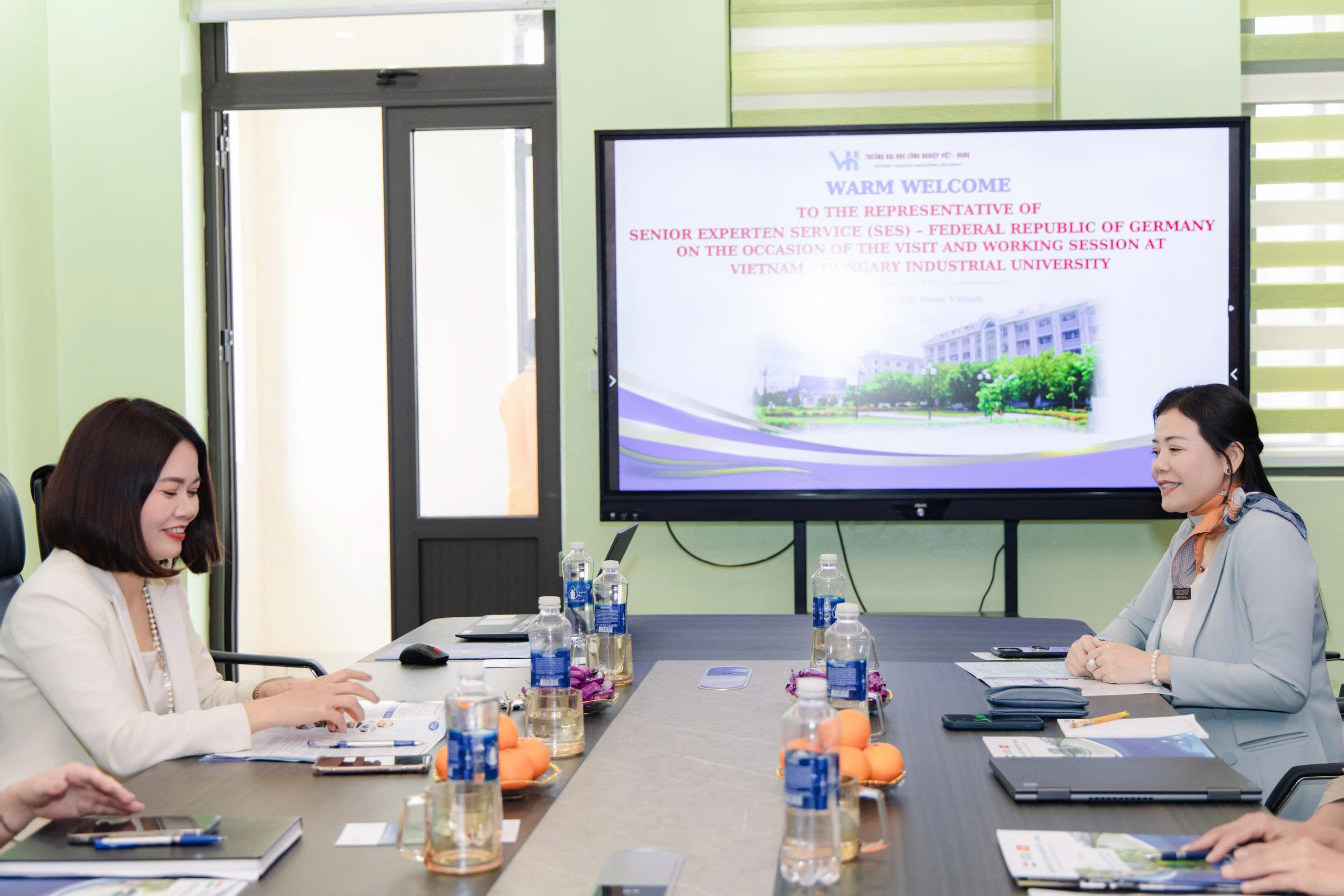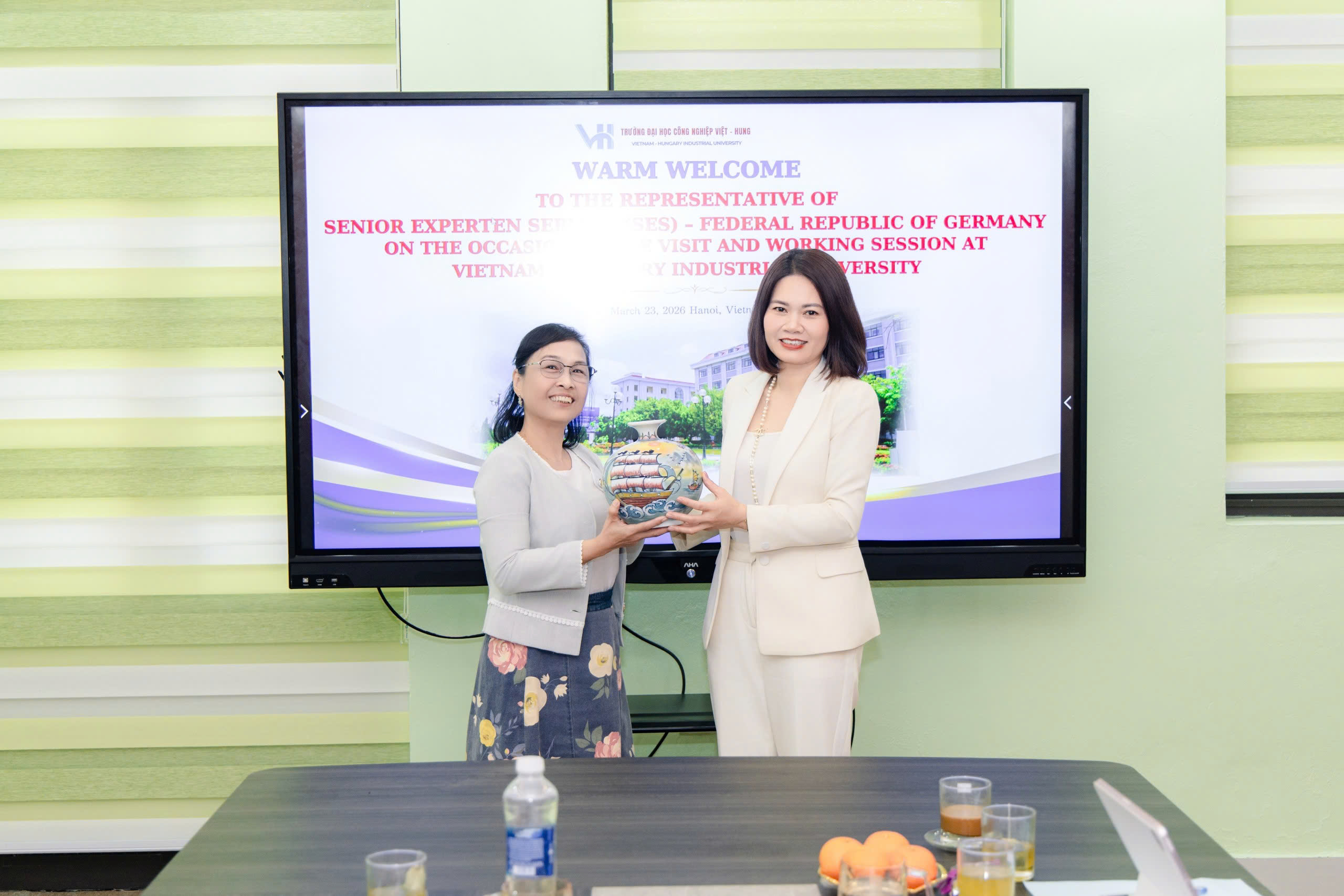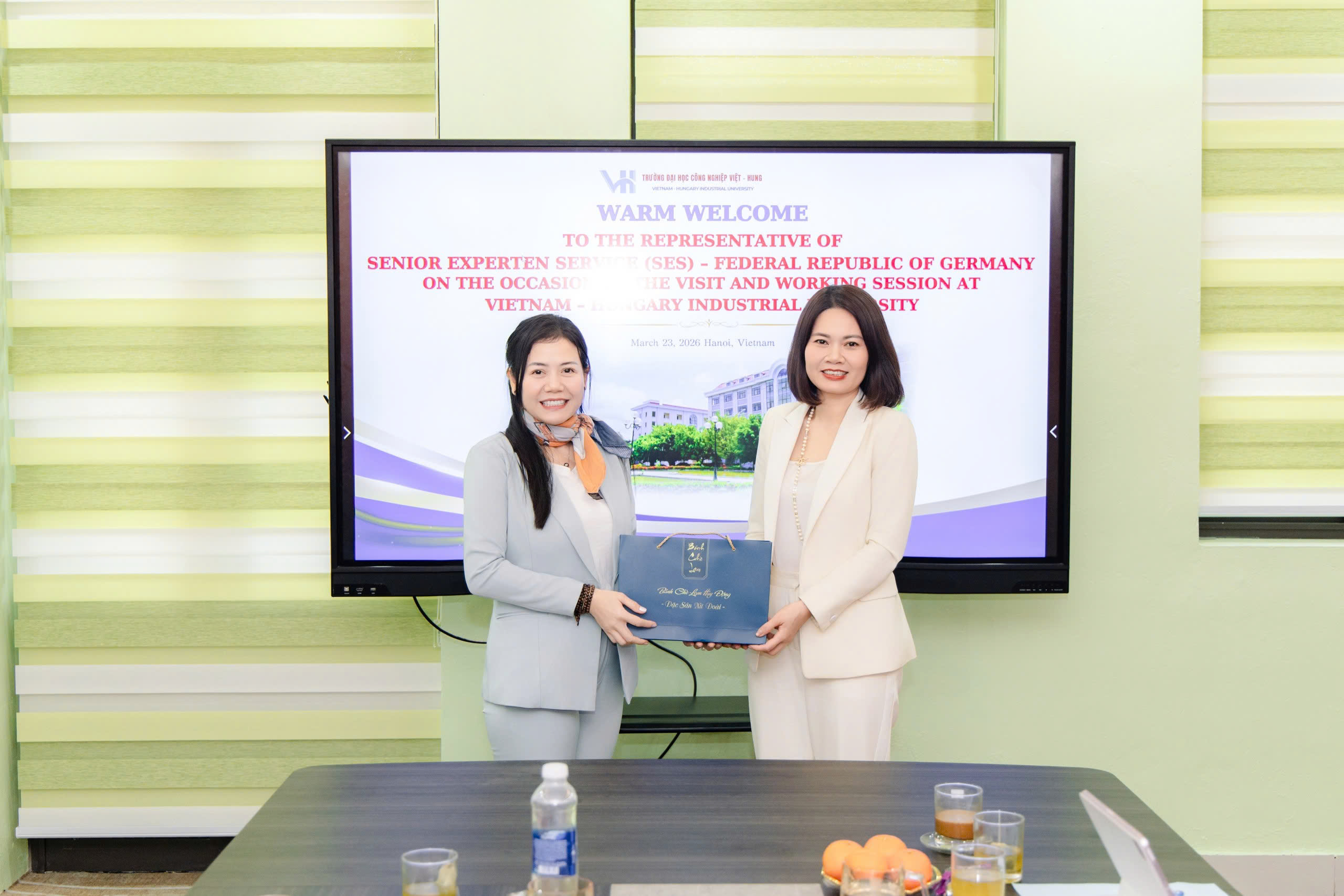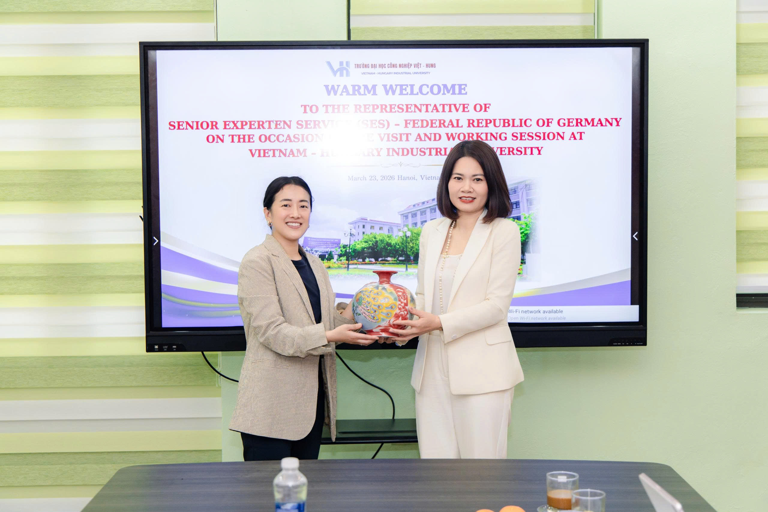Chiều ngày 23/3/2026, Trường Đại học Công nghiệp Việt - Hung đã đón tiếp và làm việc với đoàn chuyên gia đến từ tổ chức Senior Experten Service (SES) - CHLB Đức, tổ chức uy tín trong lĩnh vực kết nối chuyên gia cao cấp và chuyển giao tri thức quốc tế.