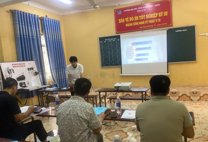 Ngày 16/4/2026, Khoa Ô tô – Trường Đại học Công nghiệp Việt - Hung đã tổ chức bảo vệ đồ án tốt nghiệp kỹ sư ngành Công nghệ Kỹ thuật Ô tô, đánh dấu bước hoàn thiện quan trọng trong quá trình đào tạo của sinh viên trước khi tốt nghiệp.