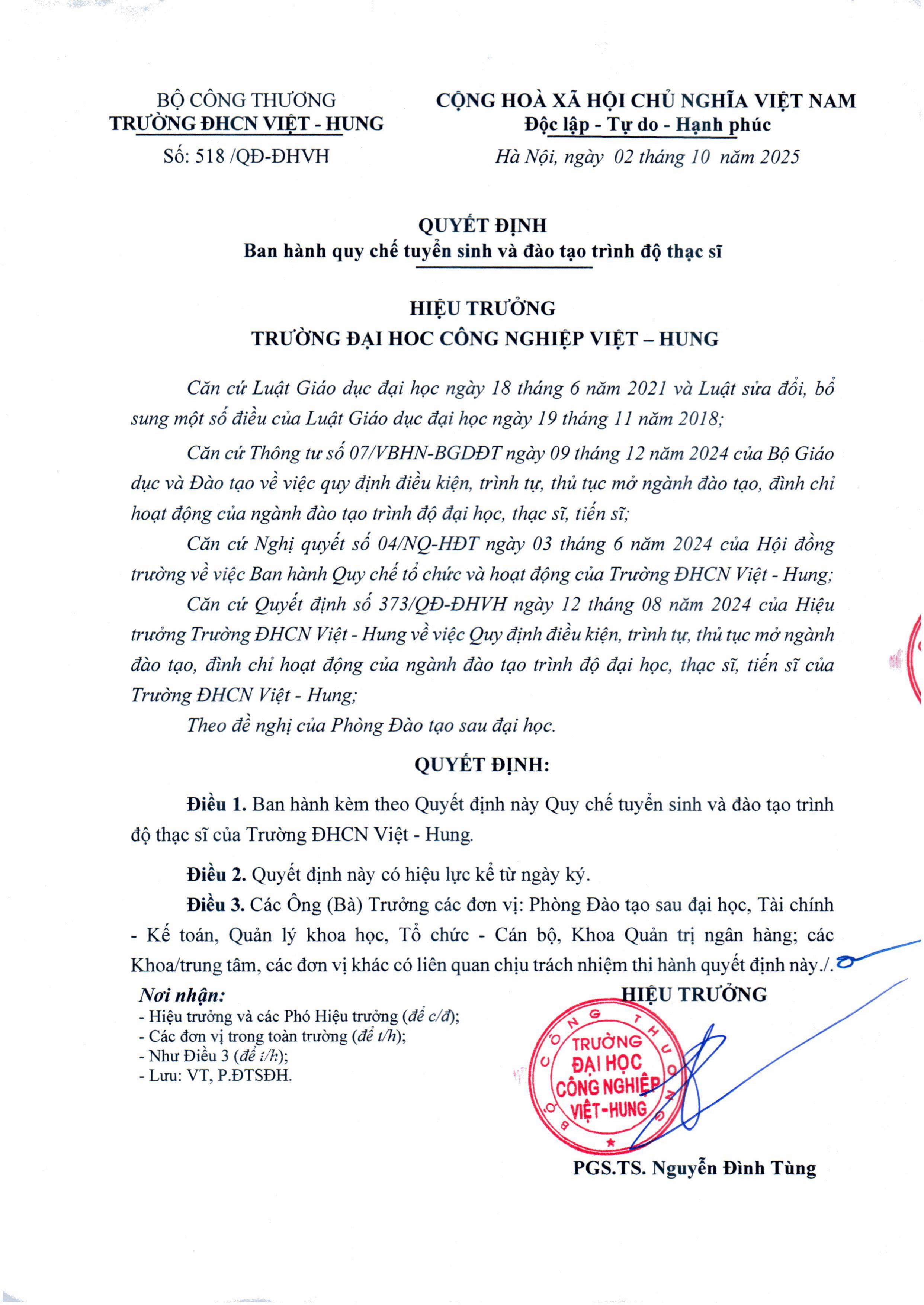 Thông tin chi tiết về xem tại đây: * QUY CHẾ TUYỂN SINH & ĐÀO TẠO TRÌNH ĐỘ THẠC SĨ 2025